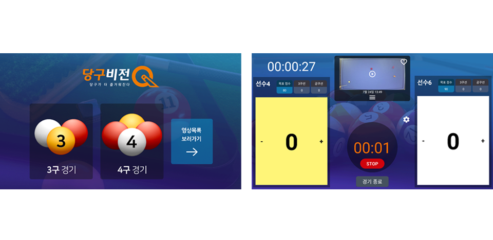 • 당구장의 스코어보드 및 플레이 영상을 저장하여 다시 볼 수 있는 프로그램