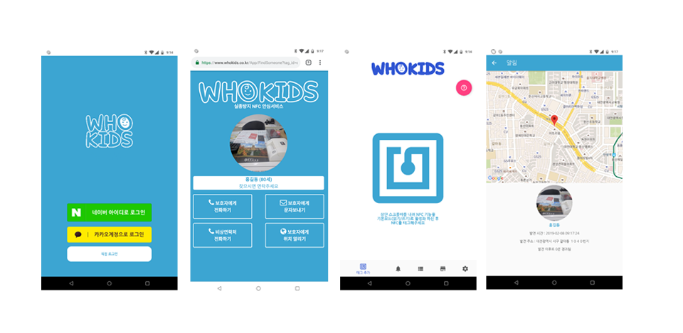 • NFC Tag를 이용하여 미아를 발견했을 시, 아이의 보호자에게 알림이 가고, 아이의 현재 위치를 알 수 있는 애플리케이션