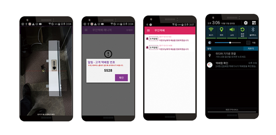 • QR 코드를 스캔 해서 택배기사에게 비밀번호를 전달하고 고객에게는 택배 도착을 알림 프로그램